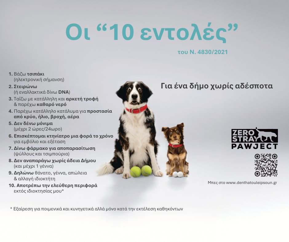 -Διανομή έντυπου υλικού, αφισών και SMS για τις υποχρεώσεις της νέας νομοθεσίας (υποχρεωτική στείρωση, DNA, microchip).