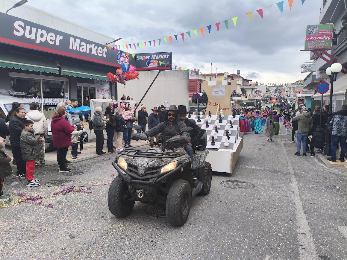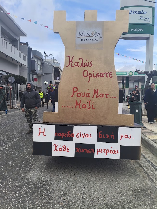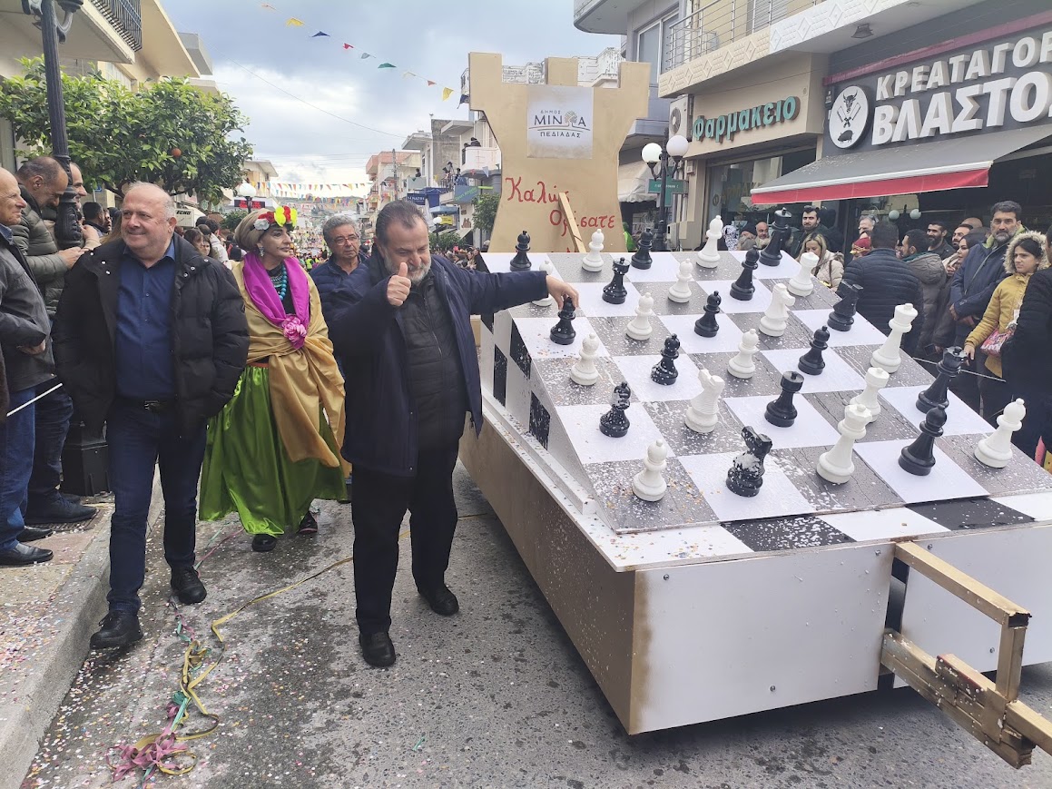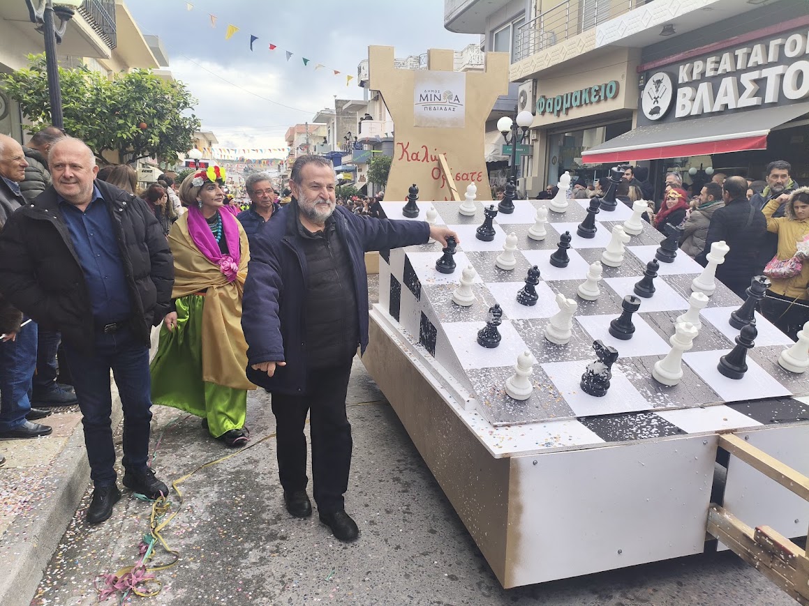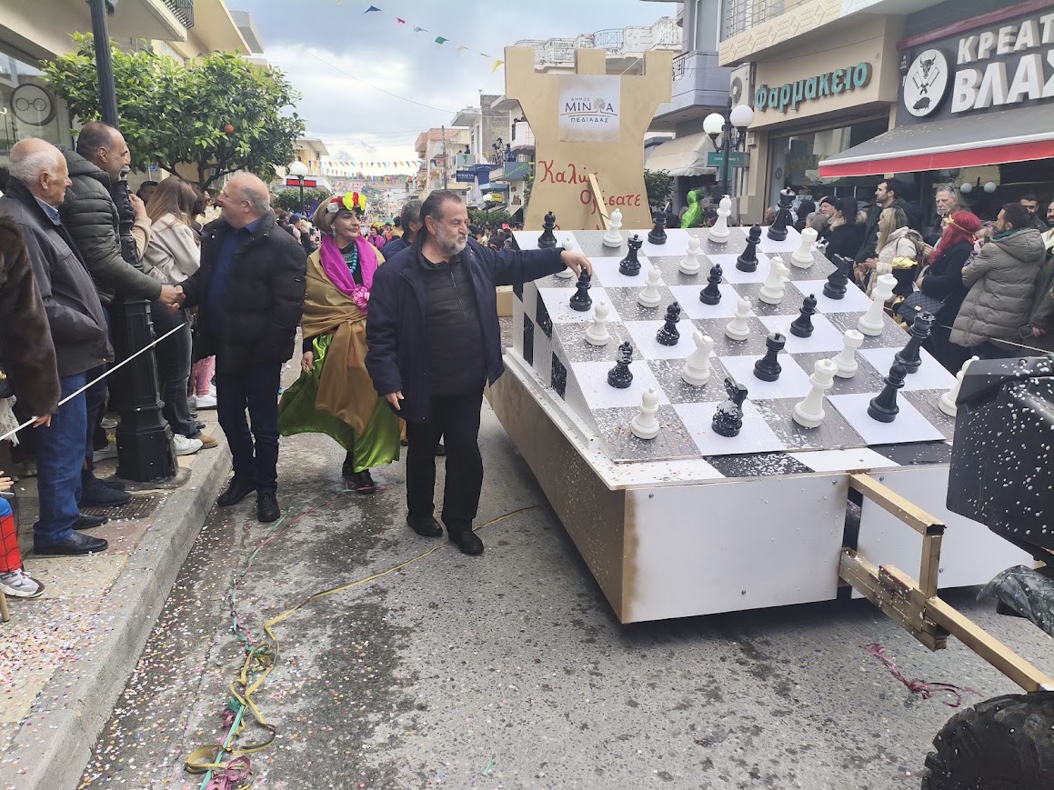 Το Καρναβάλι, είχε παλμό με τη συμμετοχή εκατοντάδων καρναβαλιστών, 18 αρμάτων/ομάδων και χιλιάδες κόσμου που απόλαυσε την καρναβαλική παρέλαση, την οποία «άνοιξαν» οι Ξυλοπόδαροι του ΟΜΜΑ STUDIO ενώ ακολούθησε το Άρμα του Δήμου που αναπαριστούσε ένα Σκάκι. Με σύνθημα: «Ρουά Ματ Μαζί: Η παρτίδα είναι δική μας, κάθε κίνηση μετράει» και ενόψει και του 22ου Ατομικού Μαθητικού Σκακιστικού Πρωταθλήματος Νομού Ηρακλείου που θα διεξαχθεί στο Αρκαλοχώρι στις 28 Φεβρουαρίου και 1 Μαρτίου!