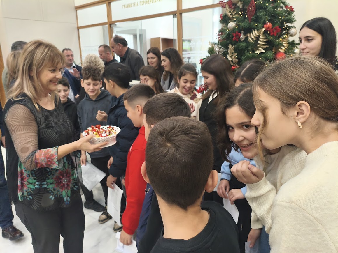 Οι μαθητές της ΣΤ΄ τάξης του Δημοτικού Σχολείου Καστελλίου επισκέφθηκαν σήμερα Δευτέρα την Περιφέρεια Κρήτης όπου έψαλαν τα πρωτοχρονιάτικα κάλαντα των Κρητών στρατιωτών των Βαλκανικών Πολέμων 1912-1913.