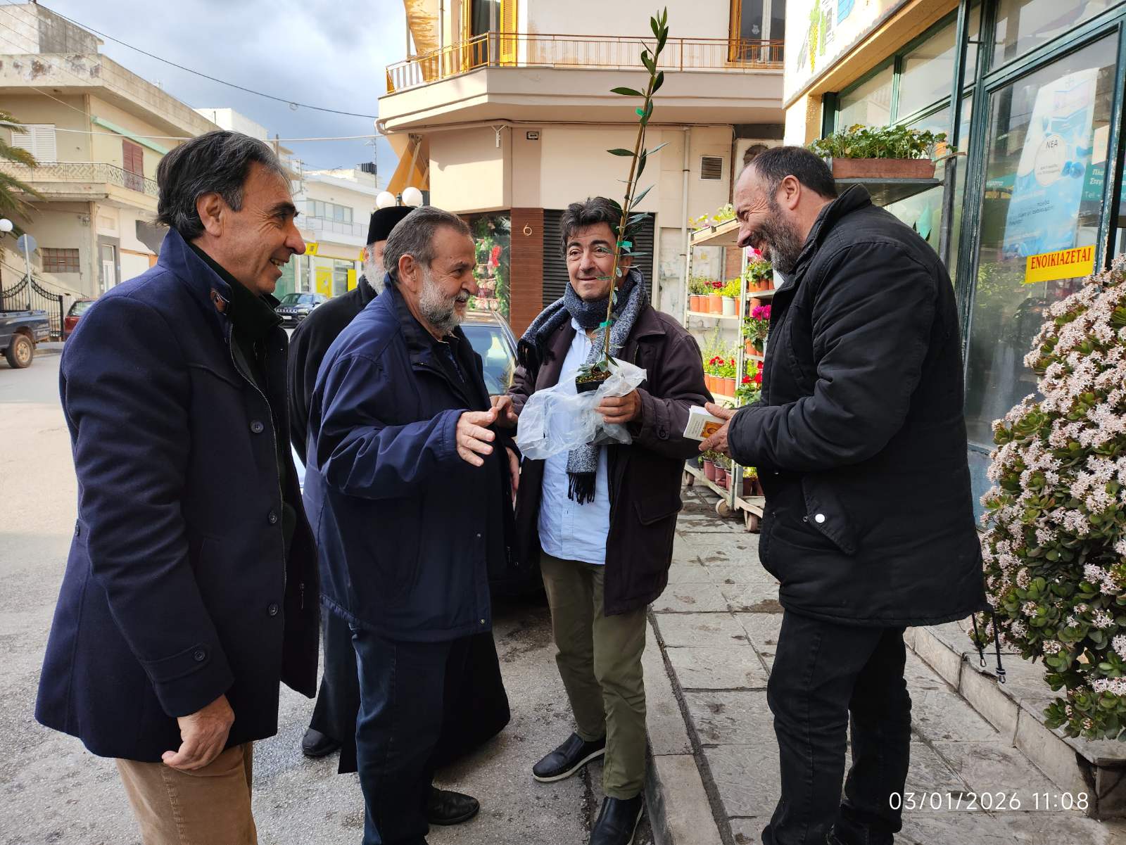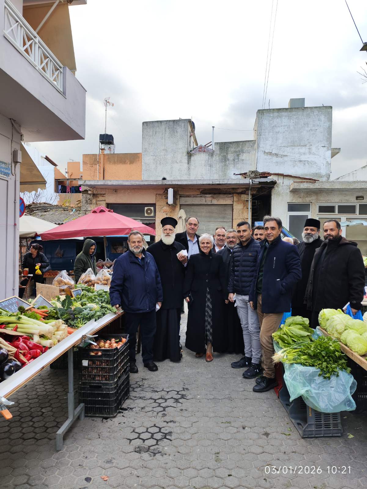 Ευχές για το νέο έτος αντάλλαξε και το Σάββατο 3 Ιανουαρίου 2026, στο Αρκαλοχώρι, ο Δήμαρχος Μινώα Πεδιάδας Βασίλης Κεγκέρογλου, επισκεπτόμενος τα υπόλοιπα καταστήματα της περιοχής, τη λαϊκή αγορά και το Αστυνομικό Τμήμα Μινώα Πεδιάδας.
