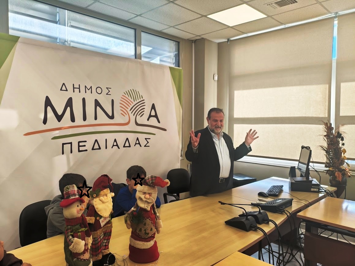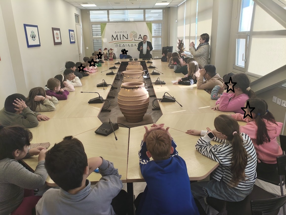 Οι μικροί μαθητές, είχαν την ευκαιρία να γνωρίσουν από κοντά τον τρόπο οργάνωσης και λειτουργίας του Δήμου, να περιηγηθούν στους χώρους του Δημοτικού Καταστήματος και να συζητήσουν με το Δήμαρχο Μινώα Πεδιάδας, Βασίλη Κεγκέρογλου.