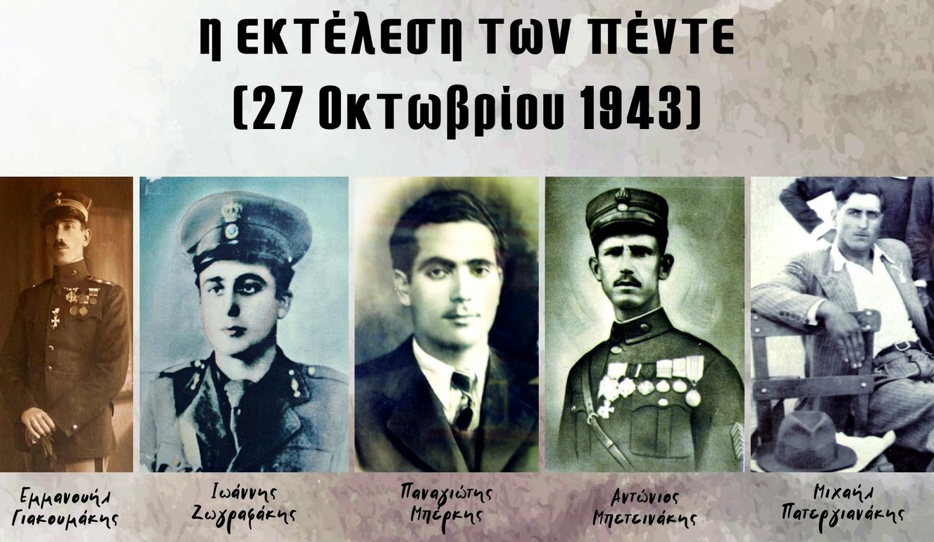 Η εκδήλωση τίμησε τους πέντε εκτελεσθέντες αξιωματικούς της Εθνικής Οργάνωσης Κρήτης (ΕΟΚ) στις 27 Οκτωβρίου 1943, στην Αγυιά Χανίων και φώτισε, μέσα από ιστορικά τεκμήρια, προσωπικές μαρτυρίες και αρχειακό υλικό, τη δράση και τη θυσία τους κατά τη διάρκεια της γερμανικής κατοχής.