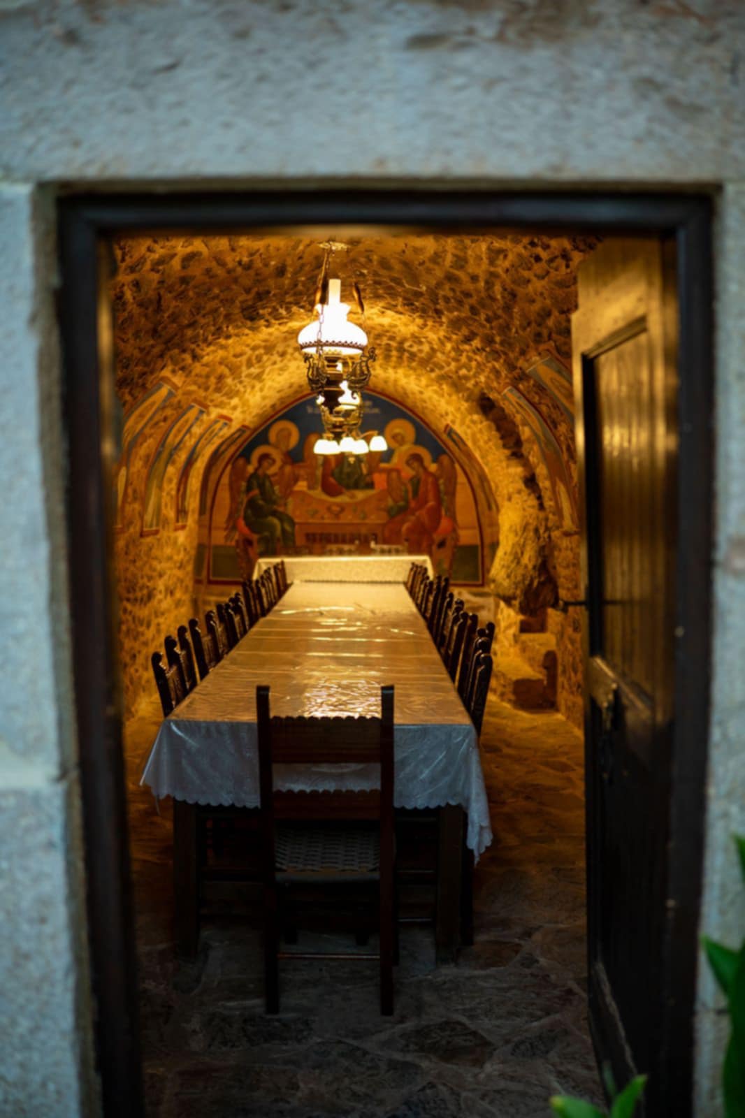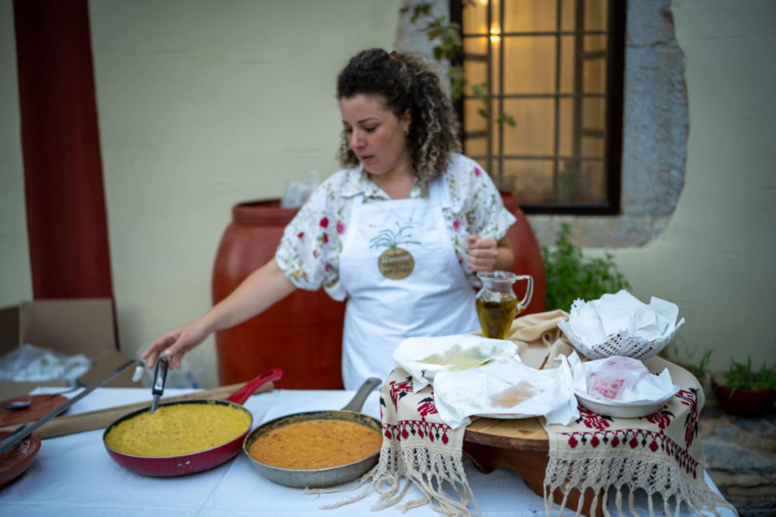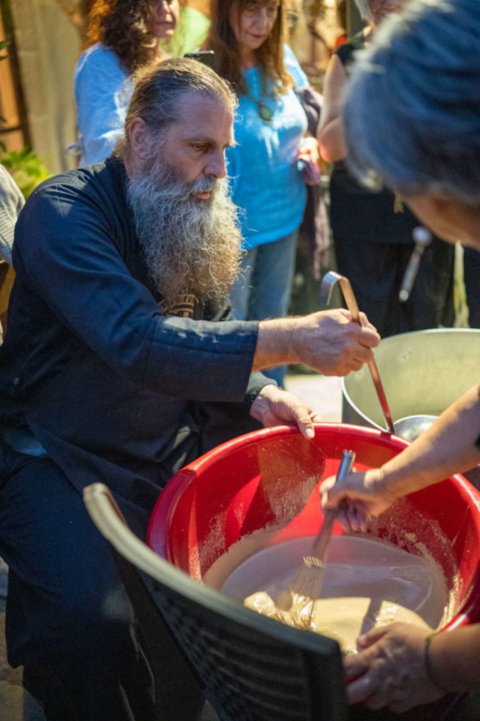 Μετά την ξενάγηση, οι επισκέπτες είχαν την ευκαιρία να απολαύσουν την παρουσίαση μοναστηριακής κουζίνας από το Σύλλογο Φεστιβάλ Κρητικής Κουζίνας, υπό την καθοδήγηση του Ηγουμένου της Μονής Καλλέργη, Σίμωνα Βουτυριάδη.