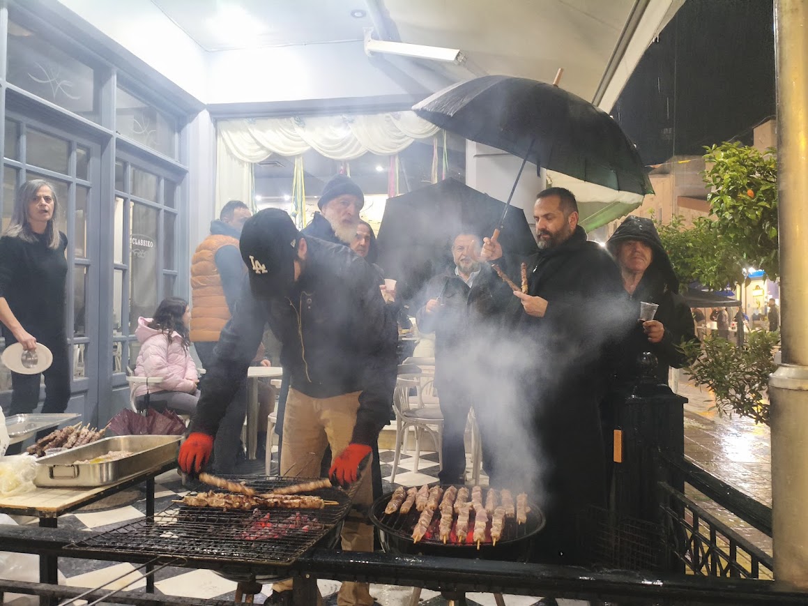 Η βροχή δε πτόησε το Αρκαλοχώρι που για μία ακόμη φορά, «τσίκνισε» με κέφι και χαρά!. Οι ψησταριές άναψαν από νωρίς έξω από τα εμπορικά καταστήματα του Αρκαλοχωρίου, με τον κόσμο που βγήκε έξω ακόμα και με ομπρέλες, να ανταποκρίνεται στο κάλεσμα του Δήμου Μινώα Πεδιάδας, του Συλλόγου Εμπόρων Βιοτεχνών Επαγγελματιών Αρκαλοχωρίου και του Πολιτιστικού Συλλόγου Αρκαλοχωρίου, με τη συμμετοχή του Συλλόγου «Λογάρι Γεύσεων» που ετοίμασε ζεστούς και νόστιμους λουκουμάδες για όλους.