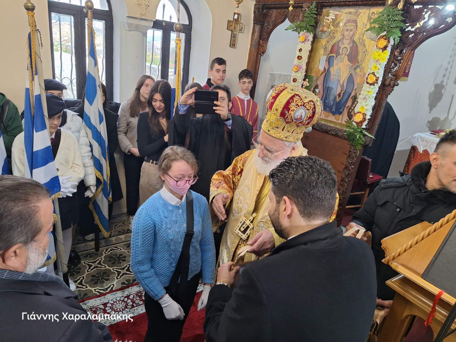 Το πρωί του Σαββάτου 17 Ιανουαρίου, τελέστηκε πανηγυρική Θεία Λειτουργία, ιερουργούντος του Σεβασμιωτάτου Μητροπολίτη Αρκαλοχωρίου, Καστελλίου και Βιάννου κ.κ. Ανδρέα, πλαισιωμένου από τον Προϊστάμενο της Ενορίας Αρχιμανδρίτη Ιερόθεο Χιώτη και κληρικούς της ευρύτερης περιοχής. Παρόντες ήταν μεταξύ άλλων, ο Δήμαρχος Μινώα Πεδιάδας Βασίλης Κεγκέρογλου, ο Αντιπεριφερειάρχης Νίκος Συριγωνάκης, ο Περιφερειακός Σύμβουλος Γιώργος Παπαδάκης, η Πρόεδρος της Δημοτικής Κοινότητας Καστελλίου Μαρία Σκουλούδη, Αντιδήμαρχοι, Δημοτικοί Σύμβουλοι και εκπρόσωποι της Δημοτικής Αρχής, εκπρόσωποι θεσμικών, εκπαιδευτικών, πολιτιστικών και άλλων φορέων του τόπου, εκπρόσωποι της 133 ΣΜ, της Αστυνομίας, της Πυροσβεστικής, οι σημαιοφόροι και παραστάτες των σχολείων του Καστελλίου και του 7ου Συστήματος Αεροπροσκόπων Καστελλίου κ.α.