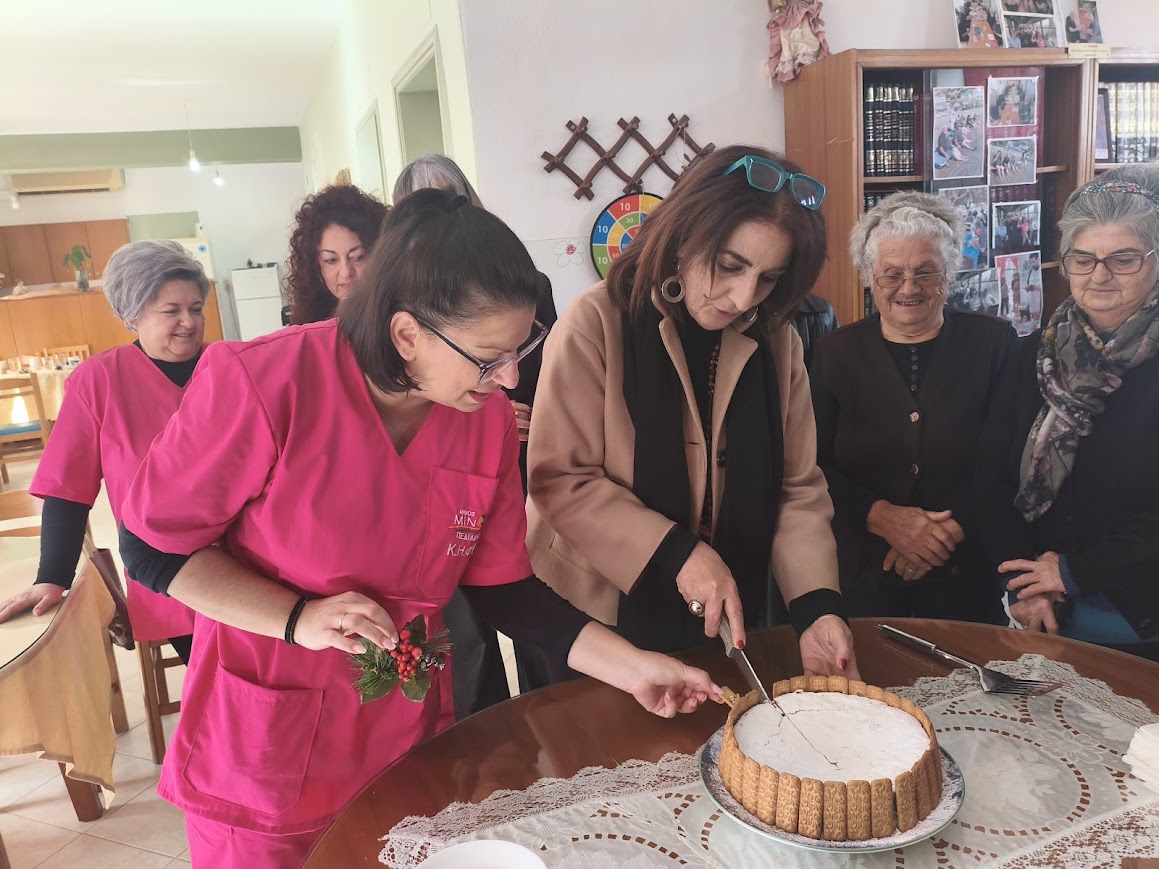 Οι ωφελούμενοι συμμετείχαν με χαρά στη γιορτή, τραγουδώντας όλοι μαζί το παραδοσιακό τραγούδι «Πάει ο παλιός ο χρόνος», λέγοντας μαντινάδες για τη νέα χρονιά και δοκιμάζοντας τη νόστιμη βασιλόπιτα, το φλουρί της οποίας «έπεσε» στον κ. Μανώλη Μαυρίκο.