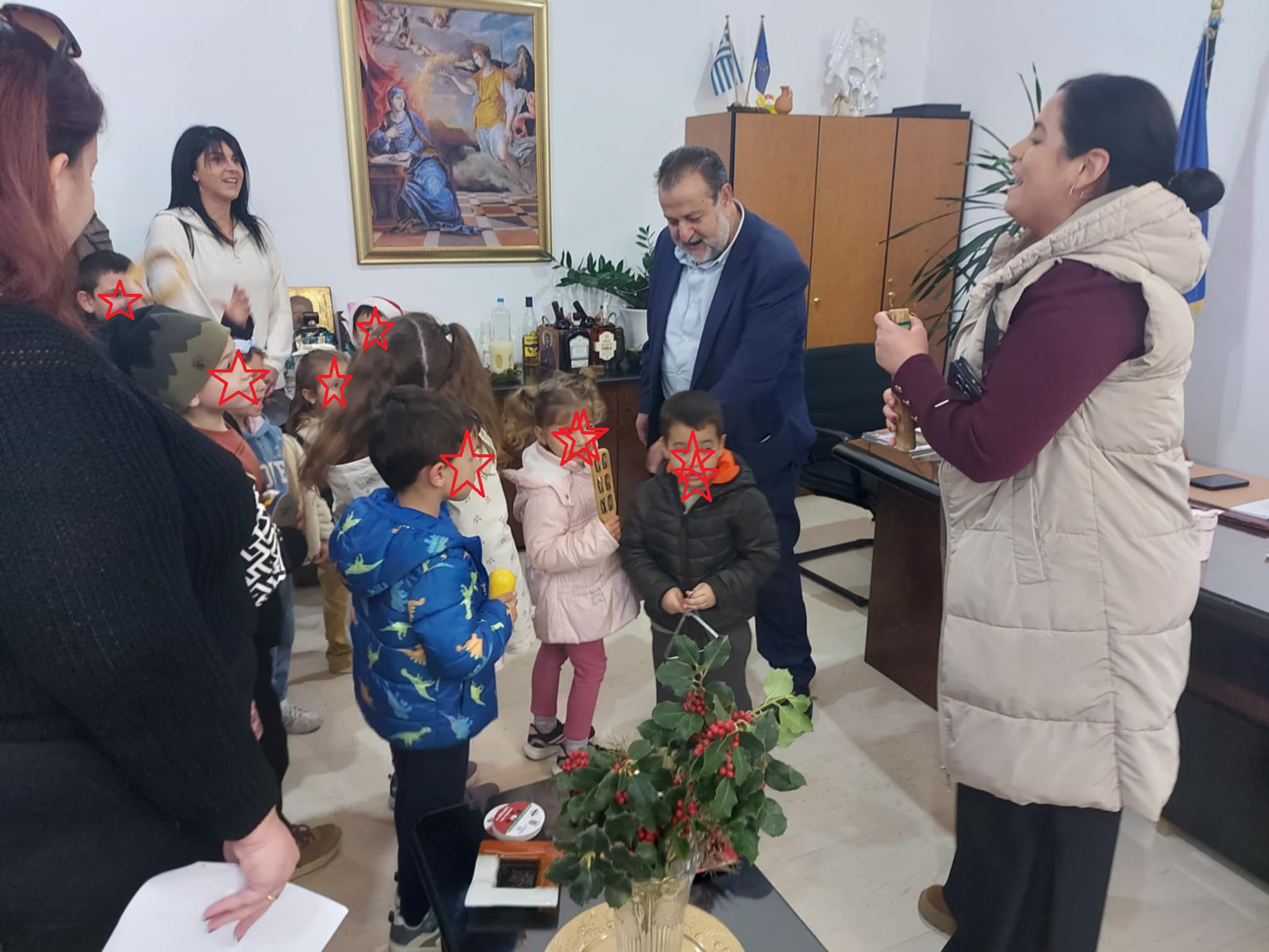 Γιορτινό και χαρούμενο ήταν το κλίμα στο Δημοτικό Κατάστημα Καστελλίου, το οποίο επισκέφθηκαν μικροί μαθητές του Γ’ Τμήματος του Νηπιαγωγείου Καστελλίου. Με τις γλυκές παιδικές τους φωνές, έψαλαν τα χριστουγεννιάτικα κάλαντα στο Δήμαρχο Μινώα Πεδιάδας, Βασίλη Κεγκέρογλου, ενώ συνοδευόμενοι από τις νηπιαγωγούς τους, του πρόσφεραν στο χειροποίητα γούρια, με το Δήμαρχο να ευχαριστεί από καρδιάς όλα τα παιδιά για αυτή τους την κίνηση.