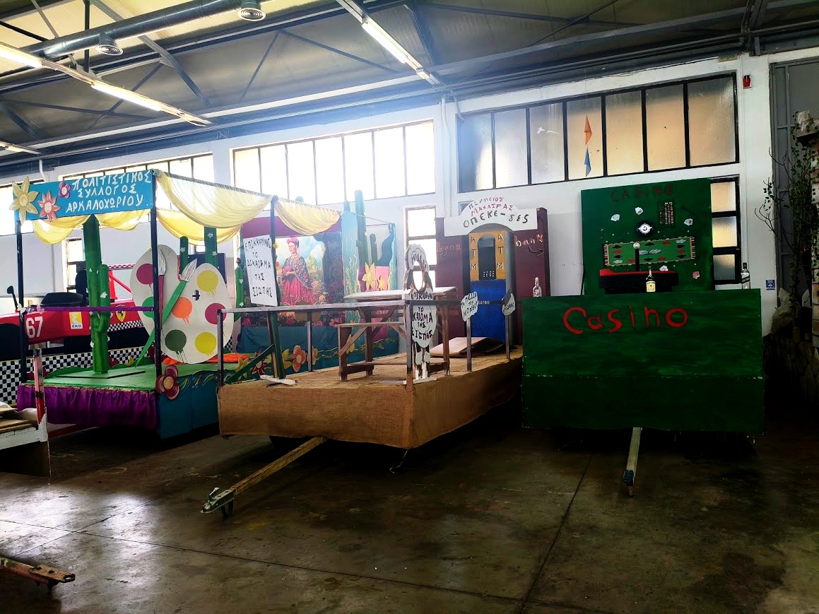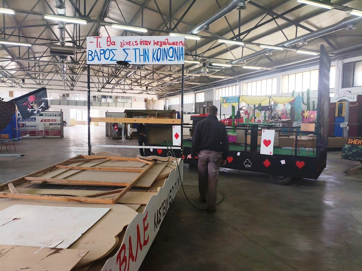 Στο Εκθεσιακό Κέντρο Αρκαλοχωρίου που αυτές τις ημέρες αποτελεί το «στρατηγείο» των ομάδων και των  αρμάτων,  τα μέλη της Οργανωτικής Επιτροπής, οι δημοτικοί υπάλληλοι, οι εθελοντές και οι ομάδες που συμμετέχουν στο Καρναβάλι, δίνουν τον καλύτερο τους εαυτό και βάζουν τις τελευταίες πινελιές στις κατασκευές, φροντίζοντας κάθε λεπτομέρεια, ώστε όλα να είναι τέλεια, την ημέρα της καρναβαλικής παρέλασης.