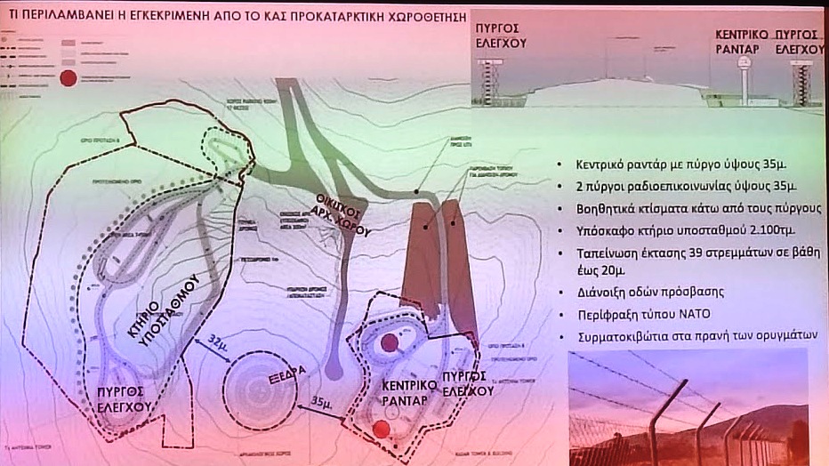 Αποκαλυπτική υπήρξε η ομιλία του ομότιμου καθηγητή του Εθνικού Μετσόβιου Πολυτεχνείου, Νικόλαου Ουζούνογλου, ο οποίος τεκμηρίωσε την ύπαρξη επτά (7) κατάλληλων εναλλακτικών θέσεων, από τις δέκα (10) που εξετάστηκαν για την τοποθέτηση του ραντάρ, σε άλλους λόφους, τέσσερις (4) από τις οποίες, δίνουν καλύτερα αποτελέσματα ως προς την ασφάλεια των πτήσεων!