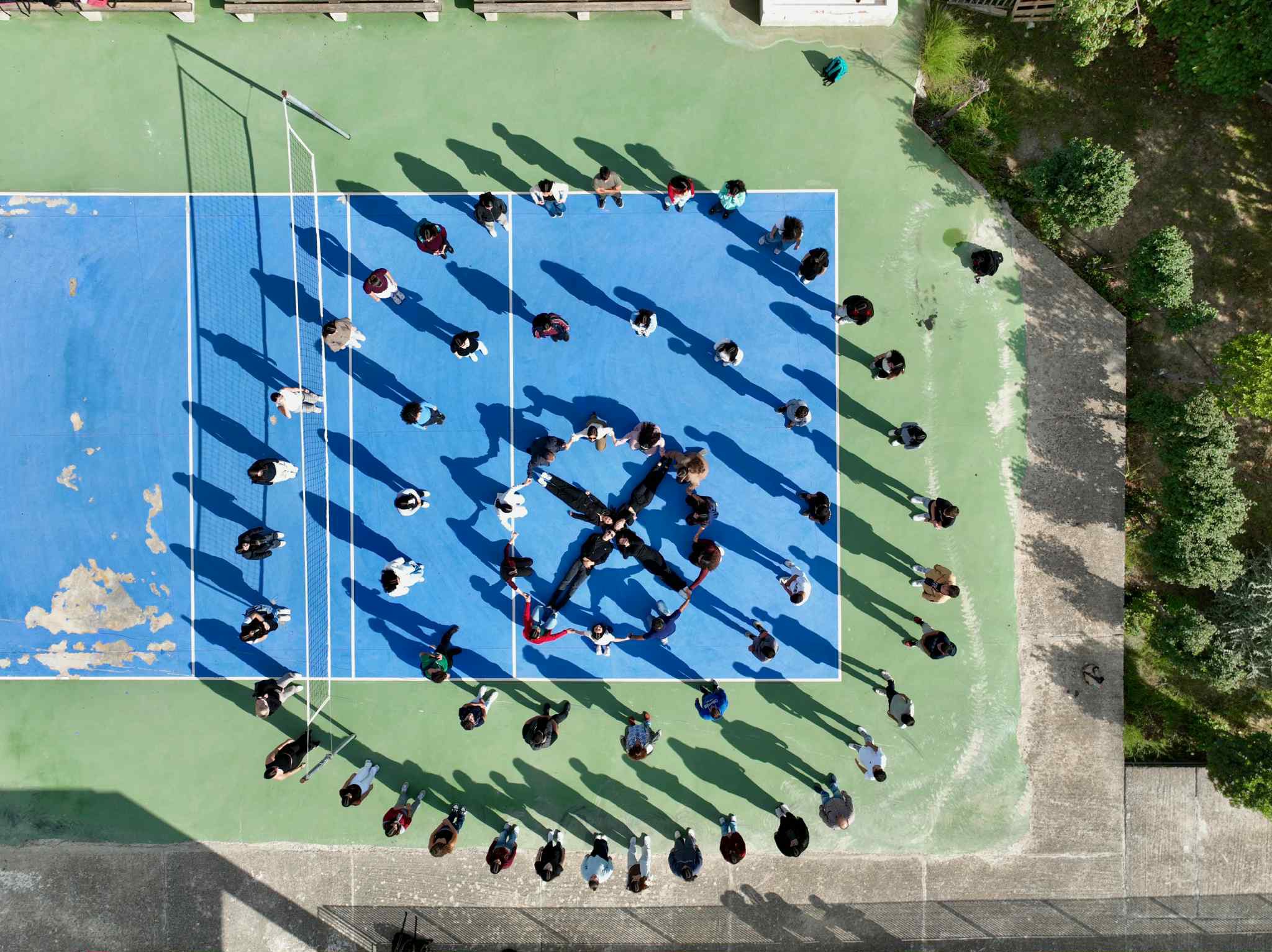 Οι μαθητές με τα σώματα τους, σχημάτισαν στην αυλή του σχολείου, τους ομόκεντρους κυκλικούς δακτυλίους και τον χαρακτηριστικό “σταυρό” στο κέντρο του αρχαιολογικού ευρήματος στο λόφο της Παπούρας, στέλνοντας με αυτό τον τρόπο ένα δυνατό μήνυμα υπέρ της διάσωσης και προστασίας του!