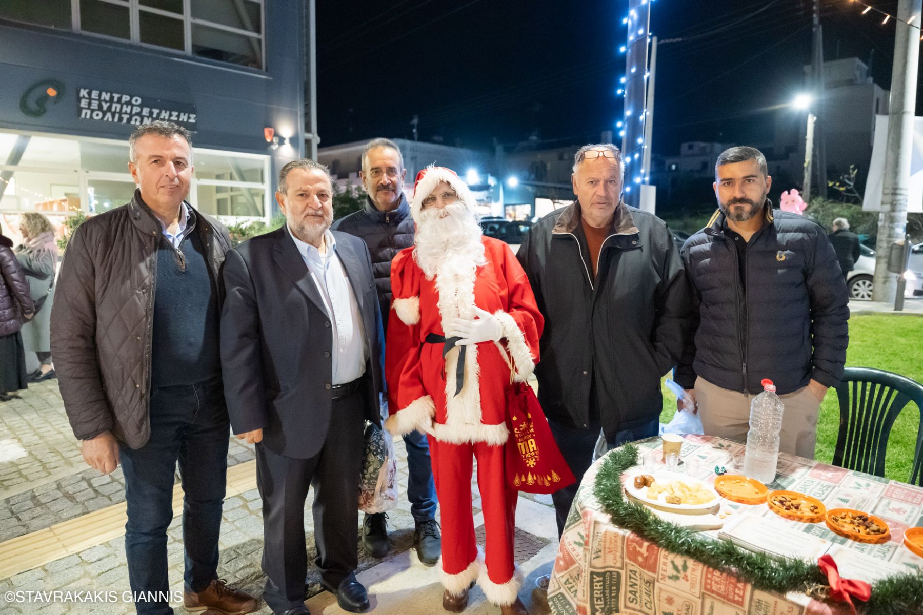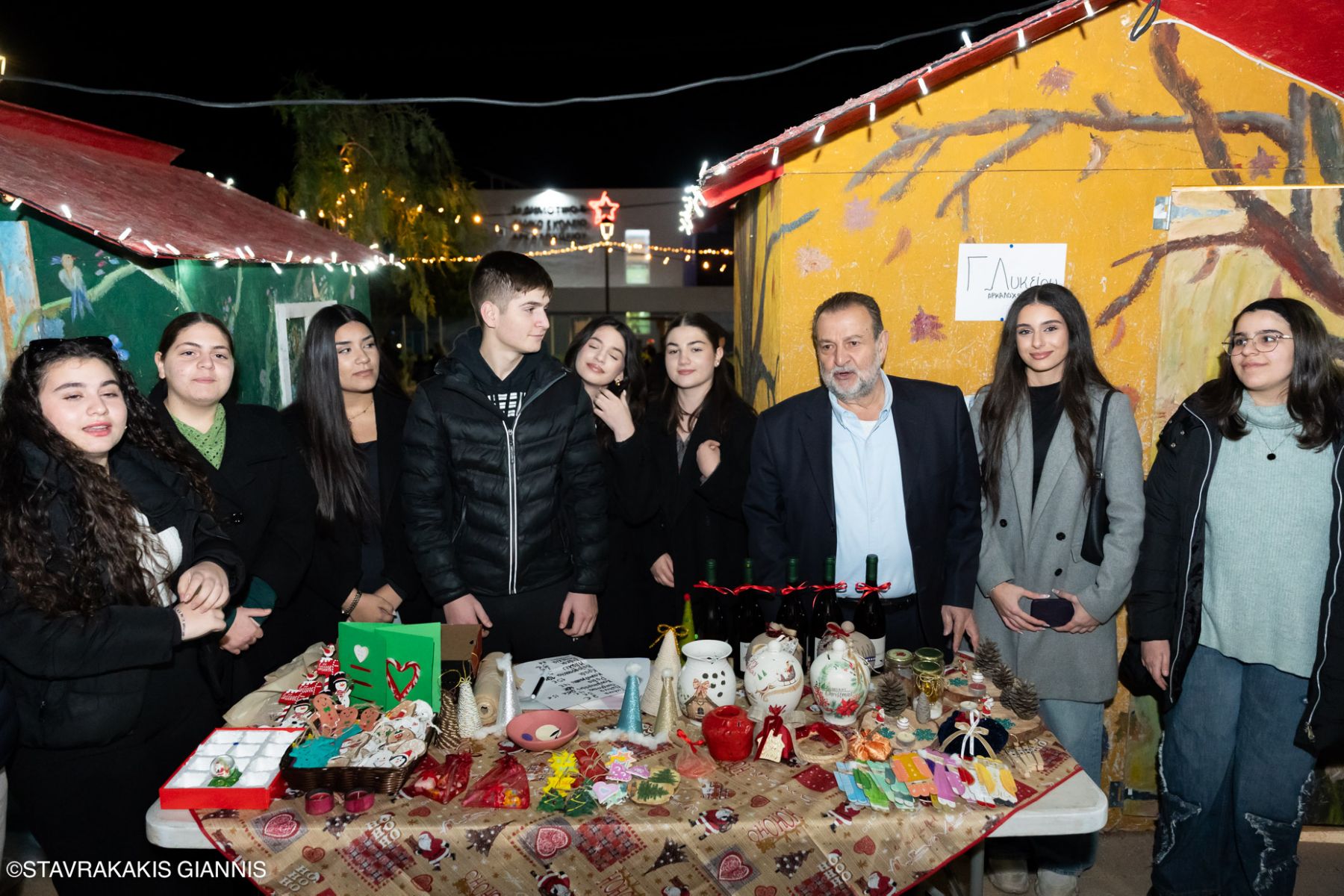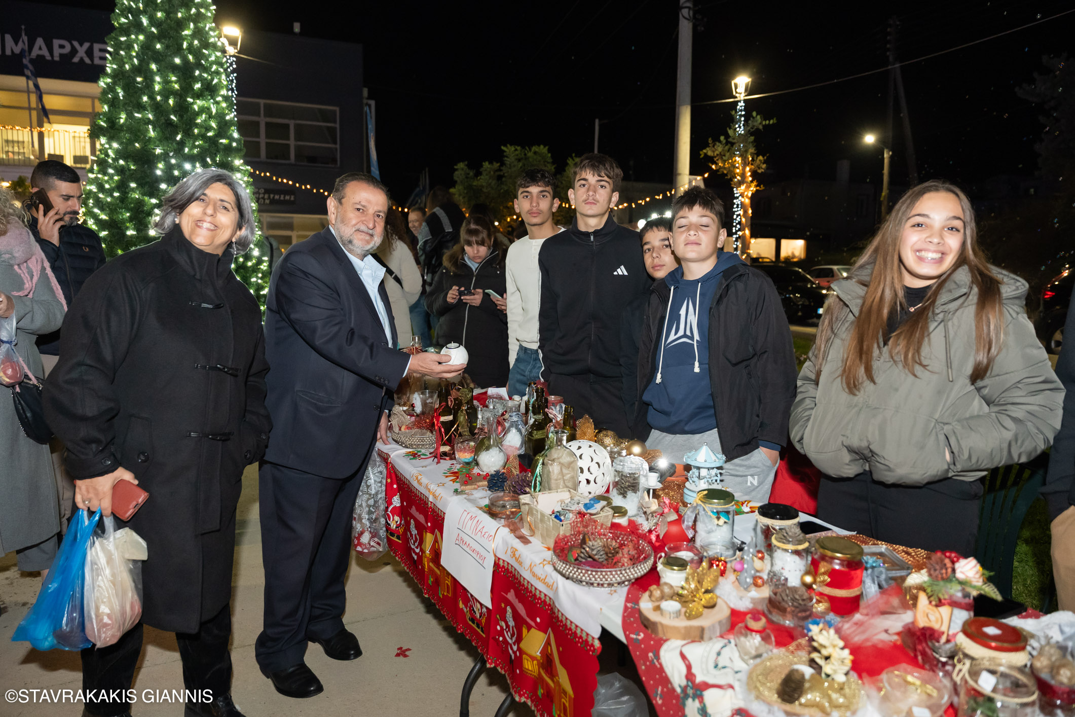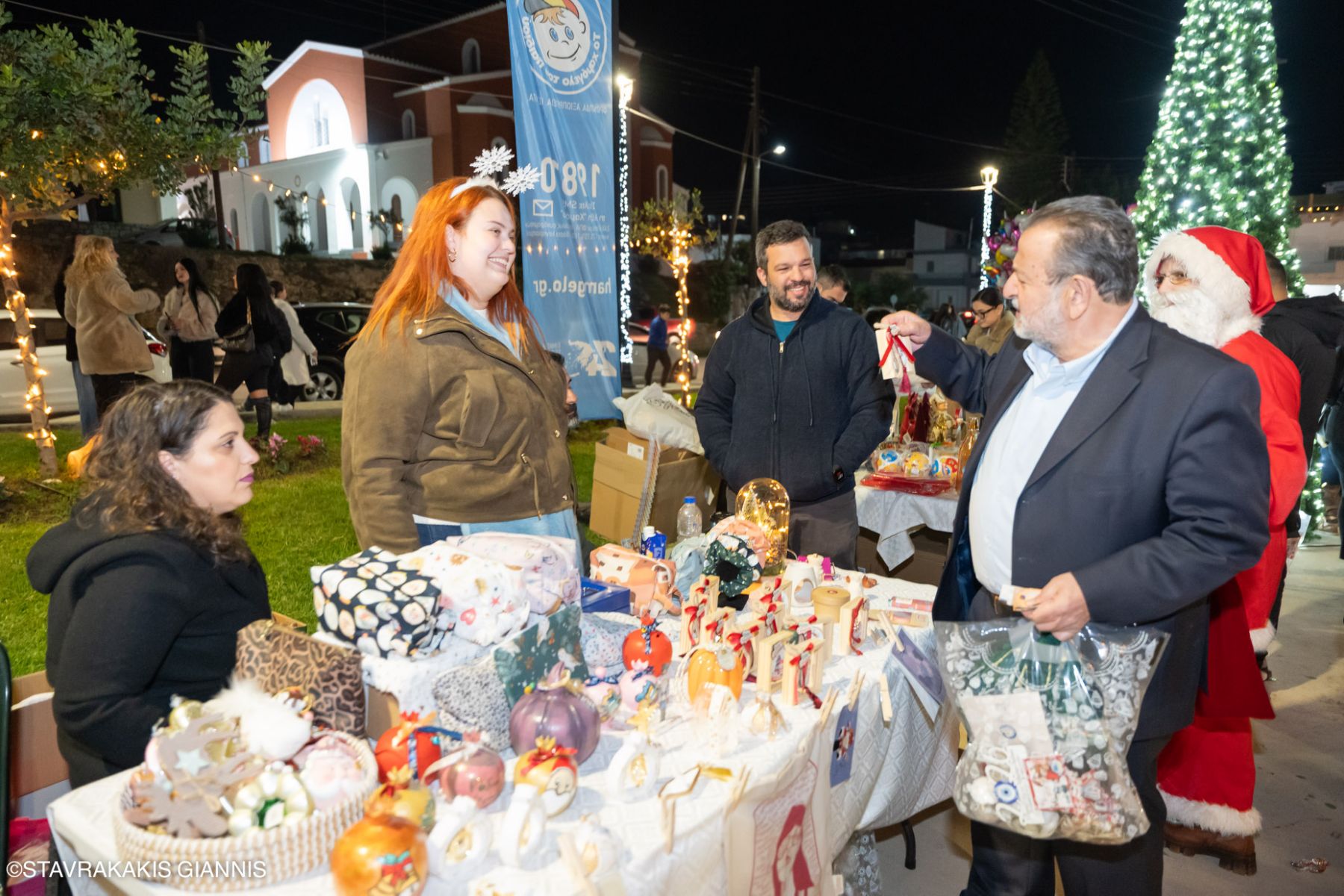 Η Πλατεία του Δημοτικού Καταστήματος Αρκαλοχωρίου, από νωρίς το απόγευμα, είχε μετατραπεί σε ένα γιορτινό χωριό, γεμάτο δράσεις και χαρούμενες φωνές μικρών και μεγάλων. Στο χριστουγεννιάτικο παζάρι και στα δρώμενα, που διοργάνωσαν οι Σύλλογοι Γονέων και Κηδεμόνων των Σχολείων Αρκαλοχωρίου, οι Παιδικοί Σταθμοί και τα Νηπιαγωγεία, οι εκπαιδευτικοί του 2ου Δημοτικού Σχολείου για κοινωνικό σκοπό, οι μαθητές της Γ’ Λυκείου, της Α’ Λυκείου, της Γ’ Γυμνασίου Αρκαλοχωρίου και της ΣΤ’ Τάξης του 1ου Δημοτικού Σχολείου, το «Χαμόγελο του Παιδιού», το Σχολείο Δεύτερης Ευκαιρίας, υπήρχαν υπέροχες χριστουγεννιάτικες δημιουργίες, χειροποίητα δώρα και εδέσματα για τον κόσμο.