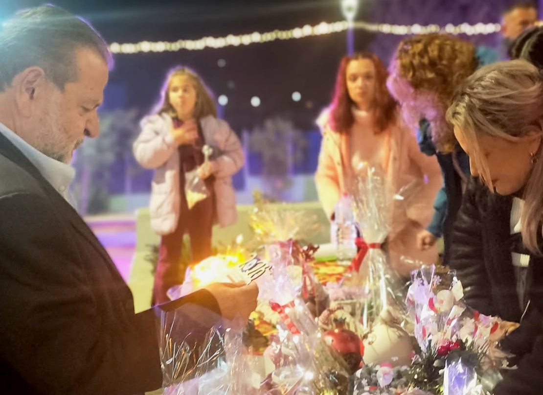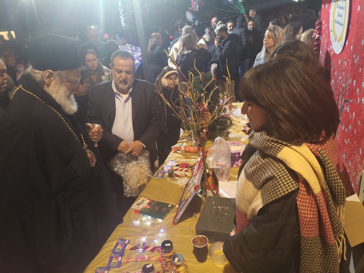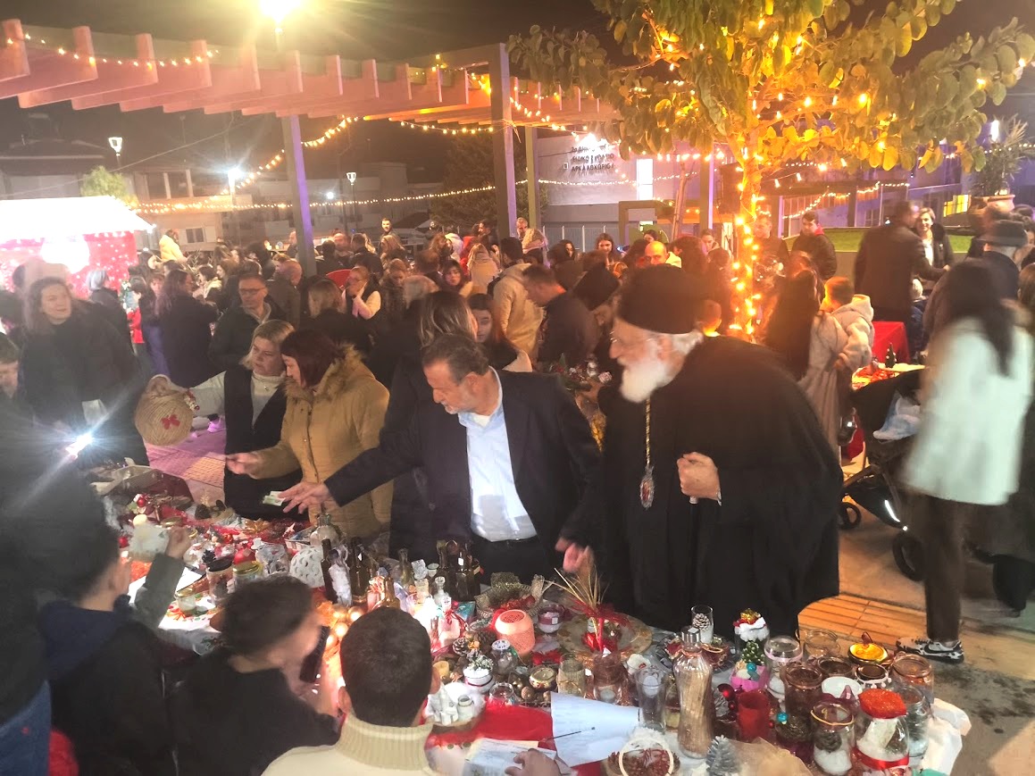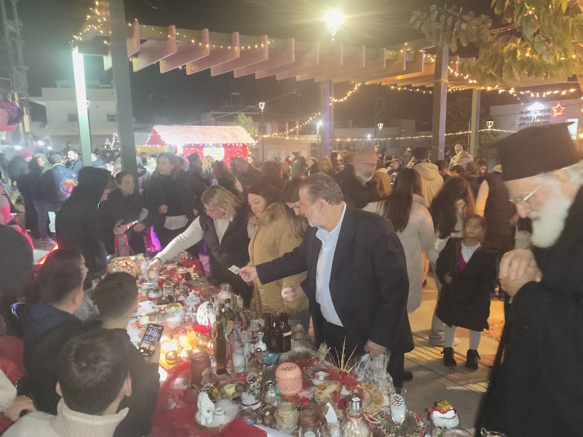 Η Πλατεία του Δημοτικού Καταστήματος Αρκαλοχωρίου, από νωρίς το απόγευμα, είχε μετατραπεί σε ένα γιορτινό χωριό, γεμάτο δράσεις και χαρούμενες φωνές μικρών και μεγάλων. Στο χριστουγεννιάτικο παζάρι και στα δρώμενα, που διοργάνωσαν οι Σύλλογοι Γονέων και Κηδεμόνων των Σχολείων Αρκαλοχωρίου, οι Παιδικοί Σταθμοί και τα Νηπιαγωγεία, οι εκπαιδευτικοί του 2ου Δημοτικού Σχολείου για κοινωνικό σκοπό, οι μαθητές της Γ’ Λυκείου, της Α’ Λυκείου, της Γ’ Γυμνασίου Αρκαλοχωρίου και της ΣΤ’ Τάξης του 1ου Δημοτικού Σχολείου, το «Χαμόγελο του Παιδιού», το Σχολείο Δεύτερης Ευκαιρίας, υπήρχαν υπέροχες χριστουγεννιάτικες δημιουργίες, χειροποίητα δώρα και εδέσματα για τον κόσμο.