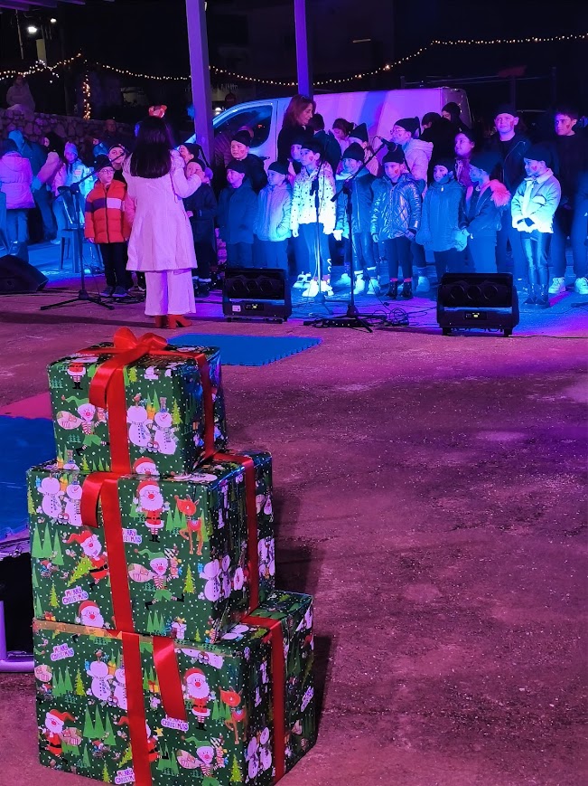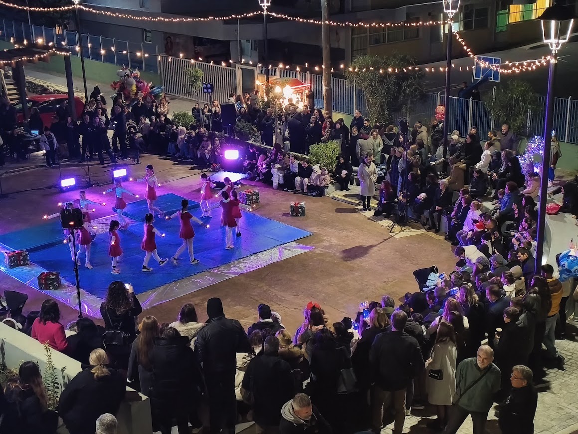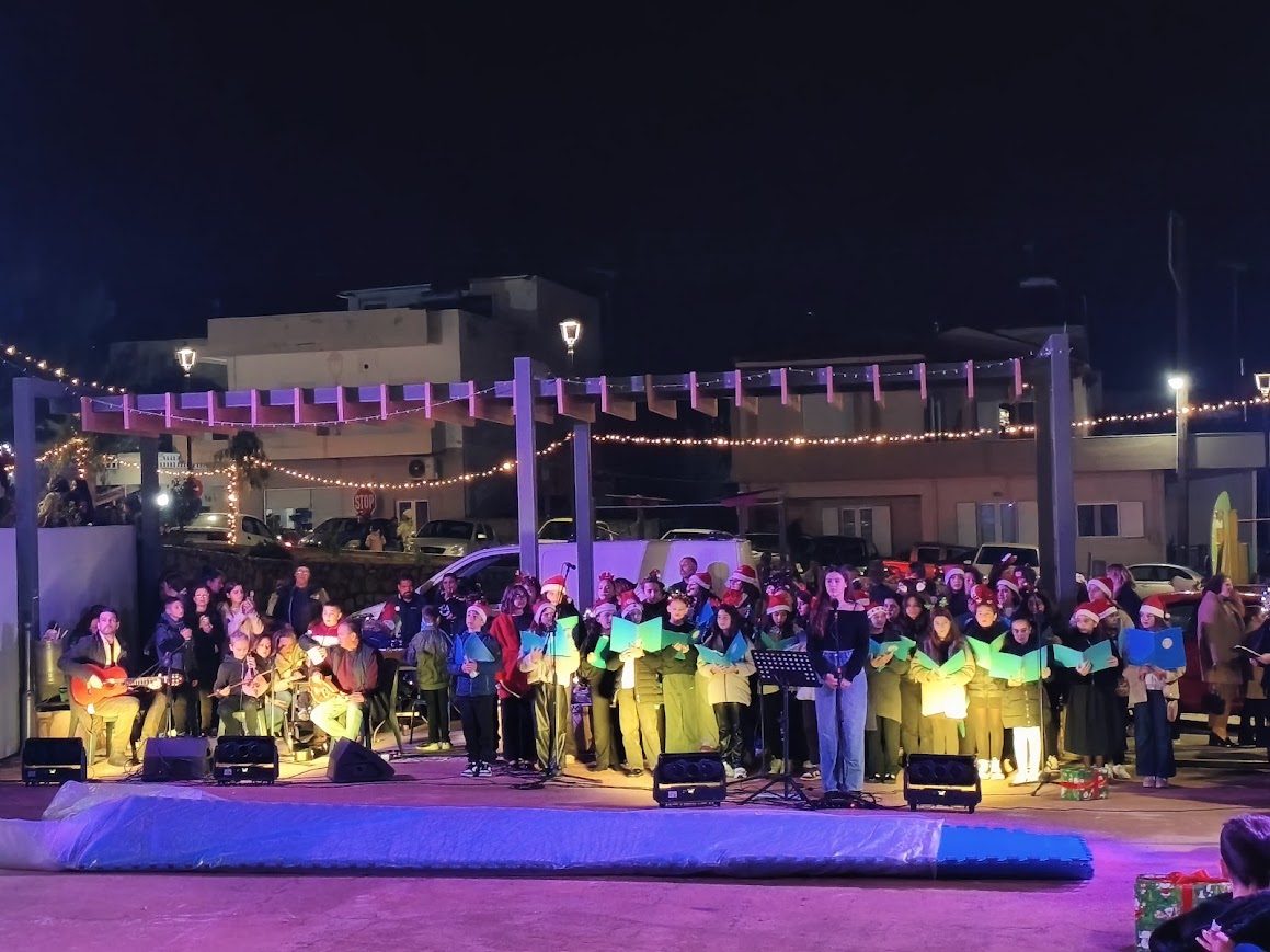 Ακολούθησαν χριστουγεννιάτικα τραγούδια και κάλαντα από τη χορωδία του 1ου και 2ου Δημοτικού Σχολείου Αρκαλοχωρίου, που «πλημμύρισαν» την πλατεία με παιδικές φωνές και γιορτινή διάθεση.