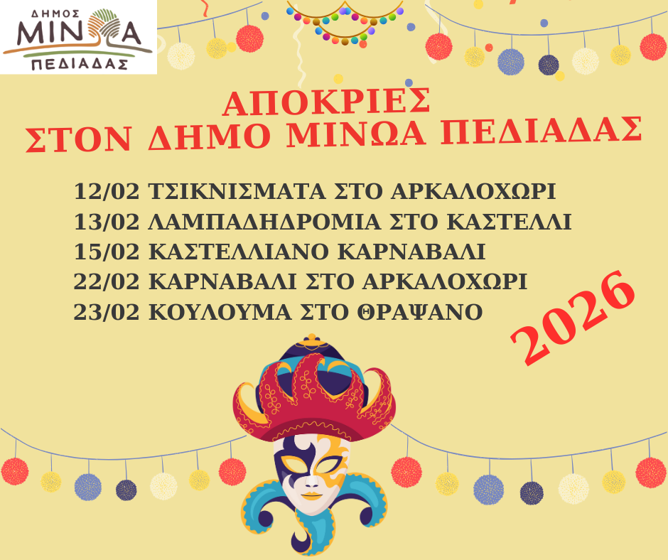 Το πρόγραμμα των Αποκριάτικων Εκδηλώσεων στο Δήμο Μινώα Πεδιάδας